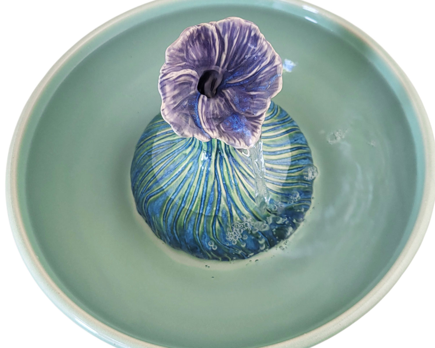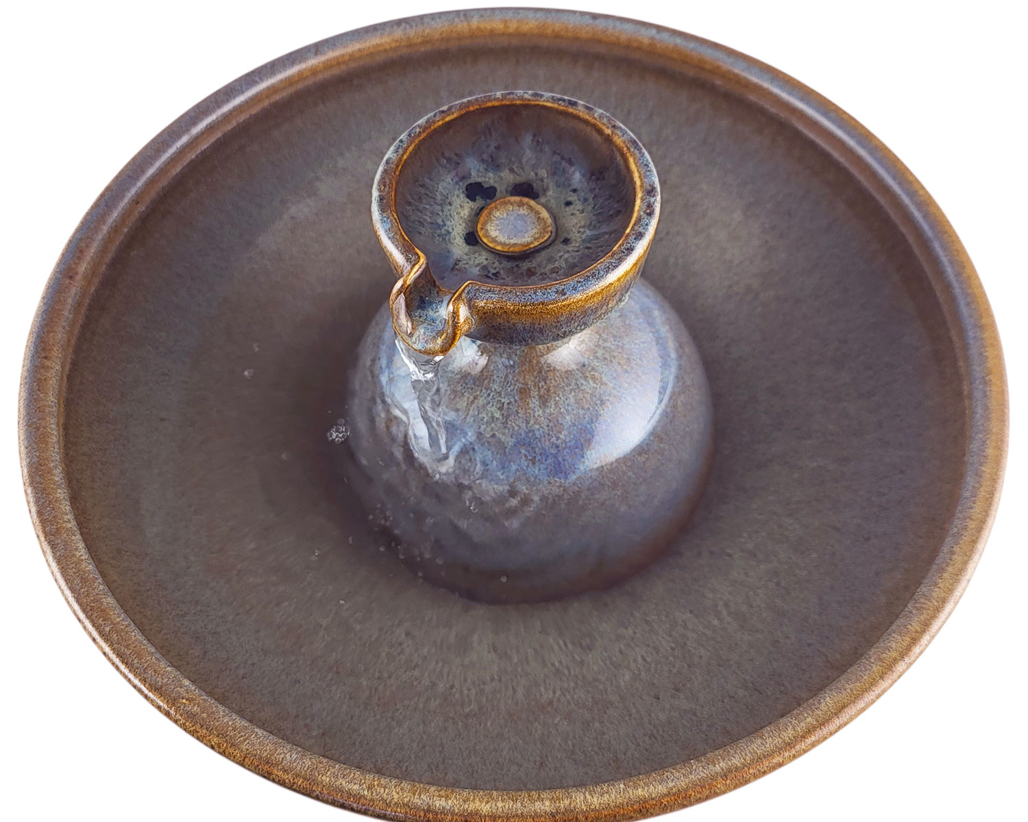 All cats crave moving water and those cats who insist on having the faucet turned on, long-haired cats and cats with short or flat faces particularly love our cat fountains with streams. and long-haired cats particularly love our cat fountains with streams. Because the water is visible and audible, they attract cats to drink. Short hair cats love them too, of course, and they’re also great for Home Décor as each is a unique, handmade, ceramic pet fountain designed with health & beauty in mind & which will considerably add to the beauty of your home. Here is a link demonstrating the various sounds different stream fountains make.